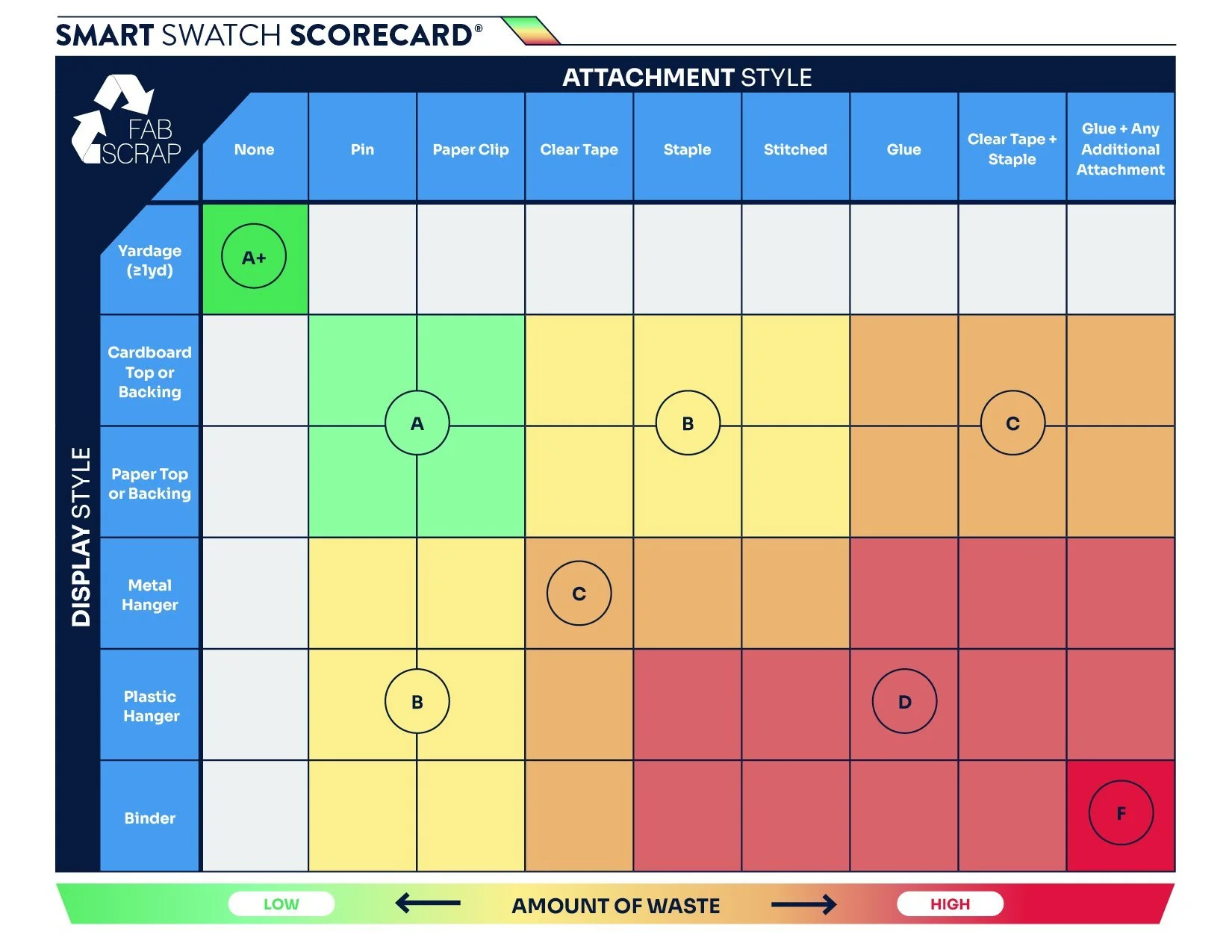 We are proud to introduce the Smart Swatch Scorecard, offering a groundbreaking tool for evaluating the environmental impact of different header types. This scorecard enables brands, textile mills, and industry stakeholders to assess their current fabric header selection based on material composition, attachment style, and end-of-life solutions.